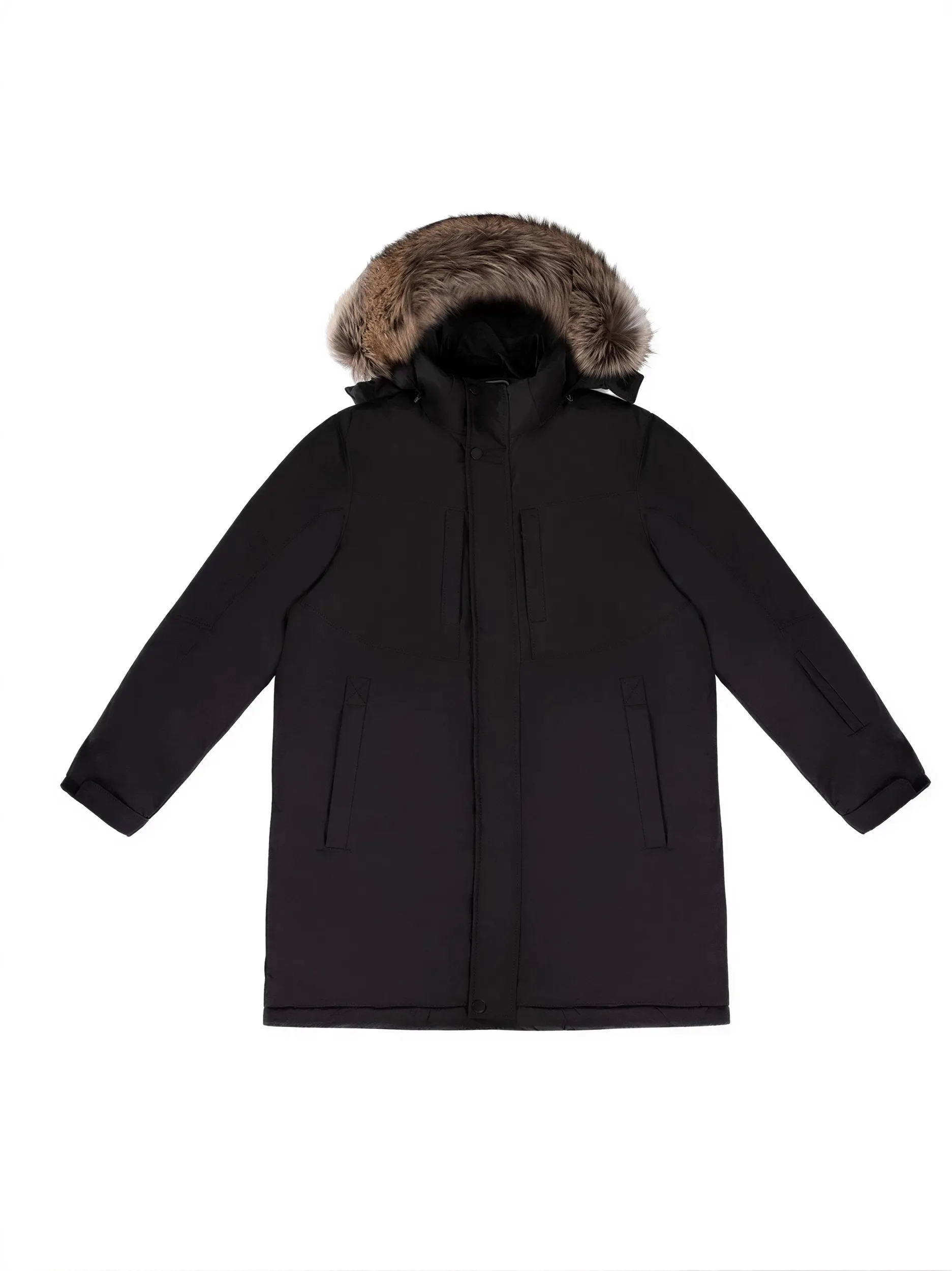 Утеплённая чёрная куртка удлиненная с натуральным мехом – ваш стильный защитник от холода! Элегантность силуэта подчеркнёт индивидуальность, а комфорт утеплителя подарит тепло даже в самые морозные дни. Удобство ношения обеспечат качественные материалы и продуманная конструкция. Отличный выбор для городских прогулок зимой и холодного межсезонья. Стильный акцент вашего гардероба уже ждёт вас! Мех енот.